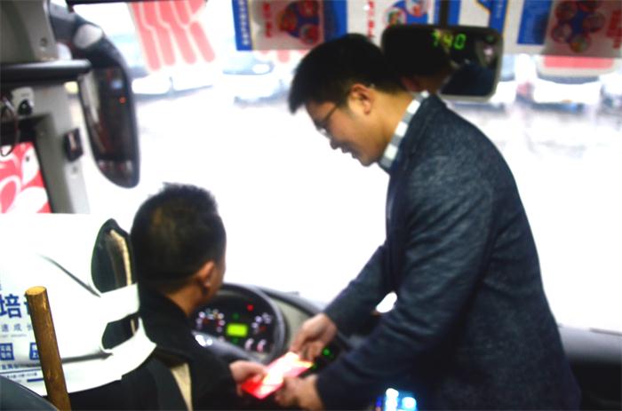 凌晨650時(shí),董事長(zhǎng)一行來(lái)到了長(zhǎng)途汽車站,“同志們,辛苦了,大家新年好!我給大家拜年了!”董事長(zhǎng)跟員工們一一握手問(wèn)好,向員工們送上了祝福。員工們自發(fā)的站成一排,向董事長(zhǎng)問(wèn)好,拜年。7:18時(shí),董事長(zhǎng)登上發(fā)往長(zhǎng)沙的班車,給旅客和司機(jī)送上了新年的祝福,并囑咐司機(jī)下雨一定要注意行車安全,并目送班車駛出車站。
